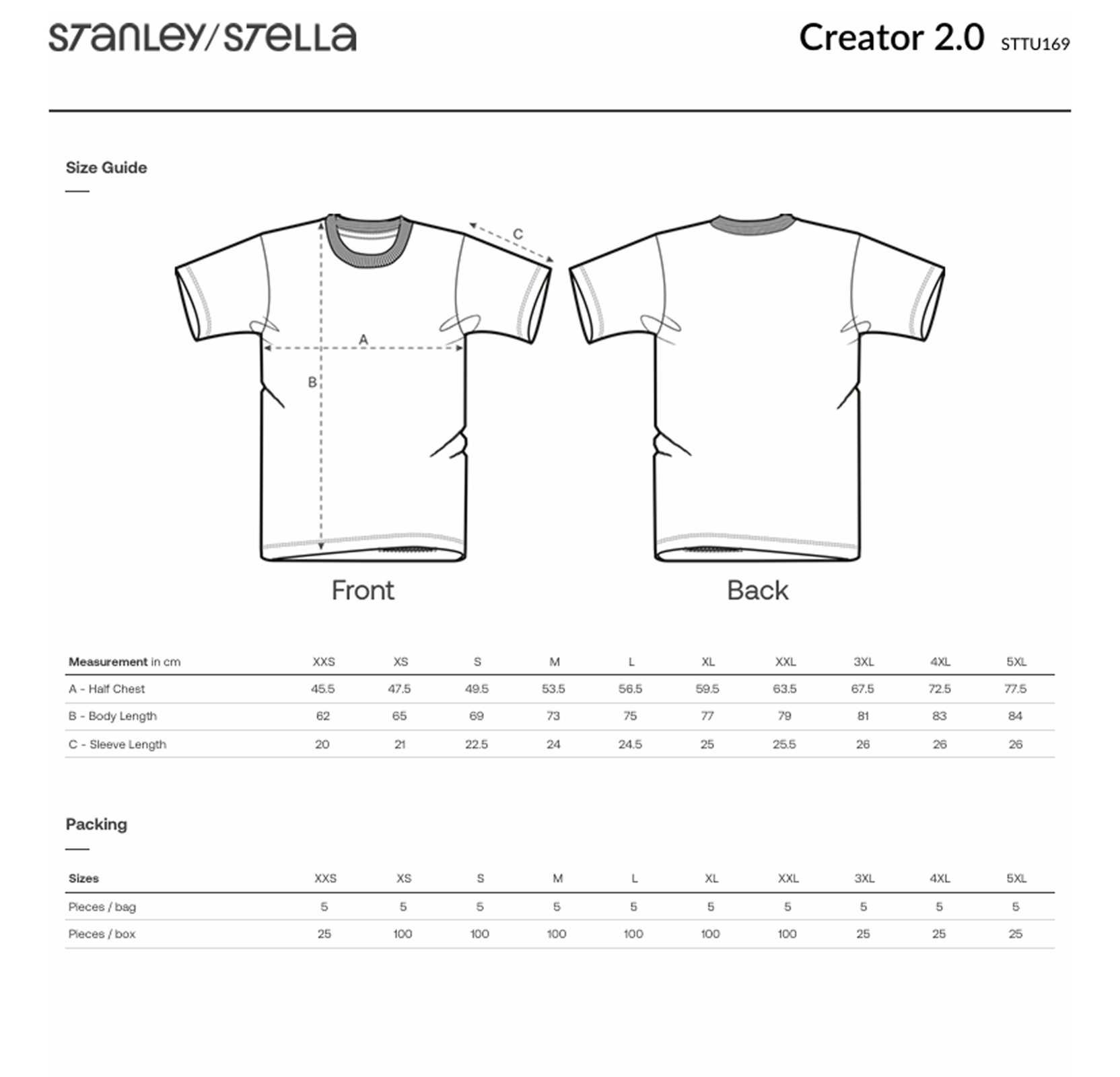 Unisex XS, Unisex S, Unisex M, Unisex L, Unisex XL, Unisex 2XL, Unisex 3XL